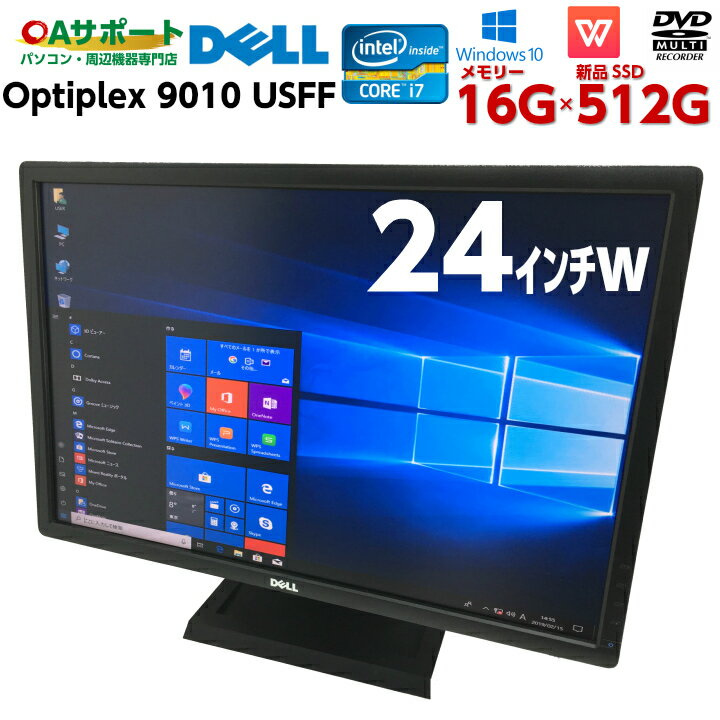 【楽天スーパーSALE限定!エントリーでポイント10倍】中古パソコン 中古デスクトップパソコン Windows10 DELL OPTIPLEX 9010 USFF 24インチモニター スタンドセット 一体型 第三世代 Corei7 新品SSD 最新OS Office付 中古動作良好品【新着商品】【送料無料】