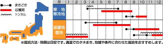 ・管理のポイント 日当たり、風通し、水はけ、水もちのよい肥沃な畑で栽培します。