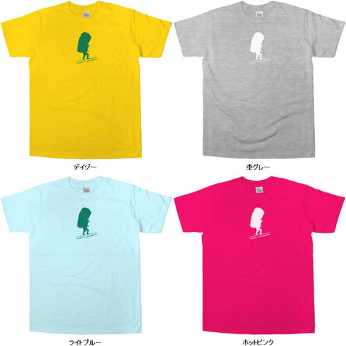 巨大なザック Tシャツ 山をこよなく愛する方にオススメのデザイン ありえないほど大きなザックを背負ったおもしろデザインのTシャツ。